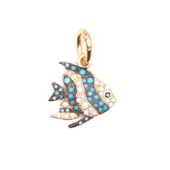 Pendente in argento 925 a forma di pesce angelo con uno studio particolare di incassatura mista in due versioni di colore. Fatto in Italia. (Dimensione 18x18mm)