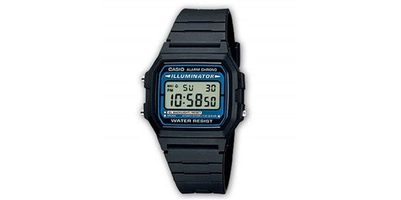 L'orologio digitale Casio F-105W-1AWYEF di CASIO COLLECTION è un modello vintage molto apprezzato e caratterizzato da una serie di funzioni fondamentali, molto utili anche per i più piccoli. L'orologio è completamente nero con cassa rettangolare e cinturino in resina, quadrante a display e movimento al quarzo. Tra le caratteristiche speciali di questo modello di digitale Casio c'è funzione illuminazione display, cronometro, allarme giornaliero, calendario automatico, formato 12/24 ore. L'orologio è impermeabile a norma DIN 8310 e/o ISO 22810, sopporta quindi spruzzi leggeri. Pratico e semplice da utilizzare, questo orologio sarà sicuramente apprezzato dai più giovani.