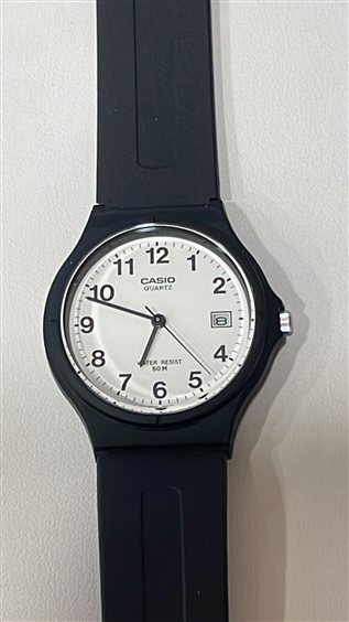 OROLOGIO CASIO UNISEX CASSA E CINTURINO GOMMA NERO CON QUADRANTE FONDO BIANCO SOLO TEMPO CON DATARIO POSIZIONATO AL NUMERO 3.