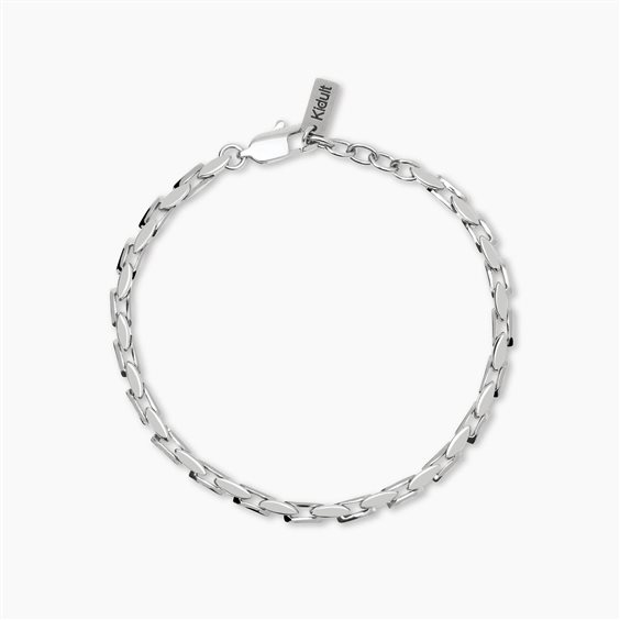 Bracciale in acciaio 316L, lunghezza regolabile da 19 a 21 cm, con catena fancy. Dimensioni: larghezza catena 4 mm