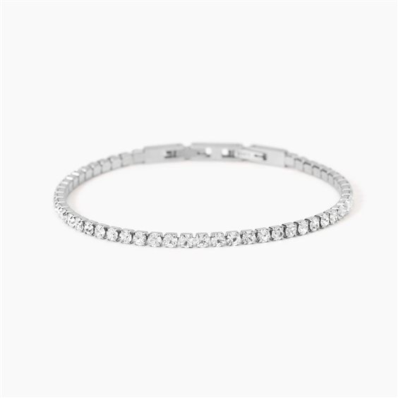 Bracciale tennis in acciaio 316L, lunghezza regolabile da 19 a 20 cm, con cristalli. Dimensioni: pietre Ø 3 mm