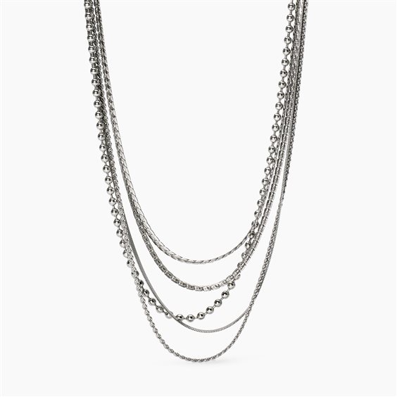 Girocollo da donna con catene multiple Girocollo in acciaio con catene multiple di diverse lunghezze. • Dimensione catena groumette: 2 mm • Dimensione catena fancy: 1,5 mm • Diametro catena a sfere: 2 mm • Dimensione catena herringbone: 1,8 mm • Dimensione catena serpentina: 1,3 mm • Misura regolanile, lunghezza da 38 a 43 cm • Materiale: Acciaio 316L