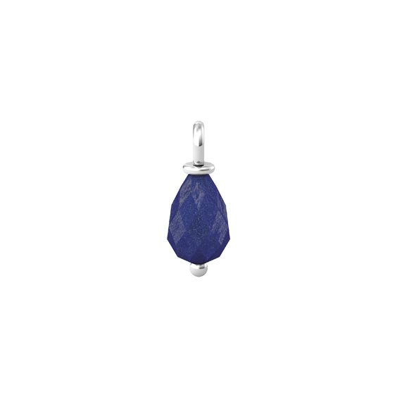 Ciondolo in acciaio 316L con goccia di lapis faccettata. Dimensioni: ciondolo Ø 15x7 mm
