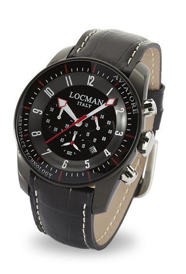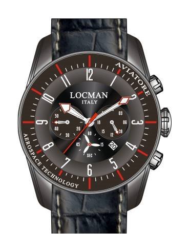 MARCA LOCMAN COLLEZIONE AVIATORE DIMENSIONE 44 mm MOVIMENTO CRONOGRAFO AL QUARZO MATERIALE CASSA ACCIAIO E TITANIO PVD BRACCIALE CINTURINO PELLE FIBBIA TRADIZIONALE QUADRANTE NERO