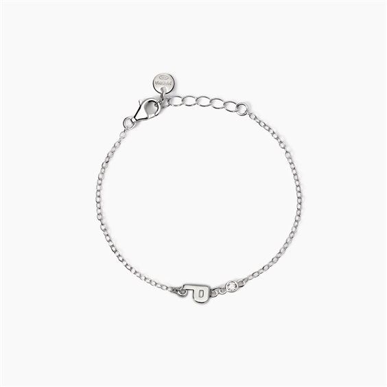 Bracciale in argento 925/ººº rodiato con catena rolò 1.5 mm, elemento lettera "P" centrale 5.5x4.5 mm e diamante lab-grown 0,035 ct, Ø 2 mm, lunghezza regolabile da 12 a 14 cm