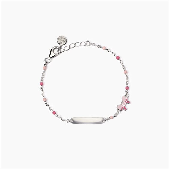 Bracciale in argento 925/ººº rodiato con catena forzatina 1.5 mm, inserti smaltati, piastra centrale 17x3.5 mm e fiocchetto smaltato 7.5x5.5 mm, lunghezza regolabile da 12 a 14 cm