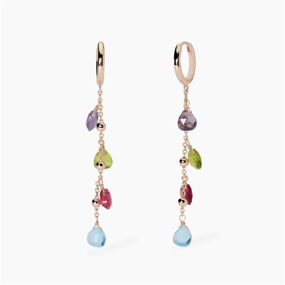 Orecchini da donna in argento placcato oro rosa 18K a cerchio con catena forzatina e pendenti in glass multicolor taglio goccia.