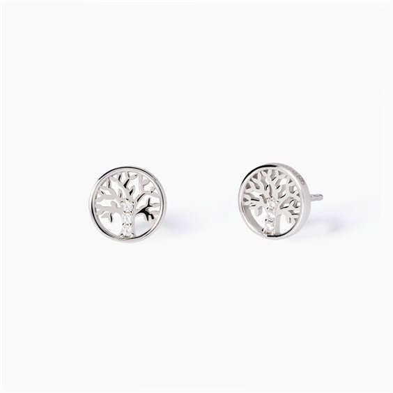 Orecchini a lobo da donna in argento rodiato con albero della vita e zirconi. • Diametro orecchino: 9 mm • Diametro degli zirconi: 1,25 mm • Materiale: Argento 925, Zirconi