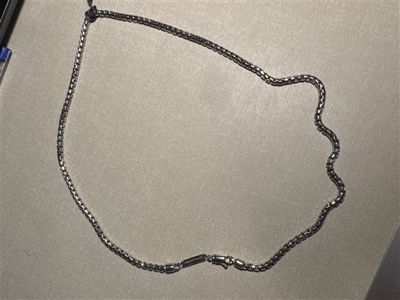 Collana uomo con maglia veneziana, finitura ossidata, lavorazione artigianale. Piastrina con logo Unoaerre. mis. 50